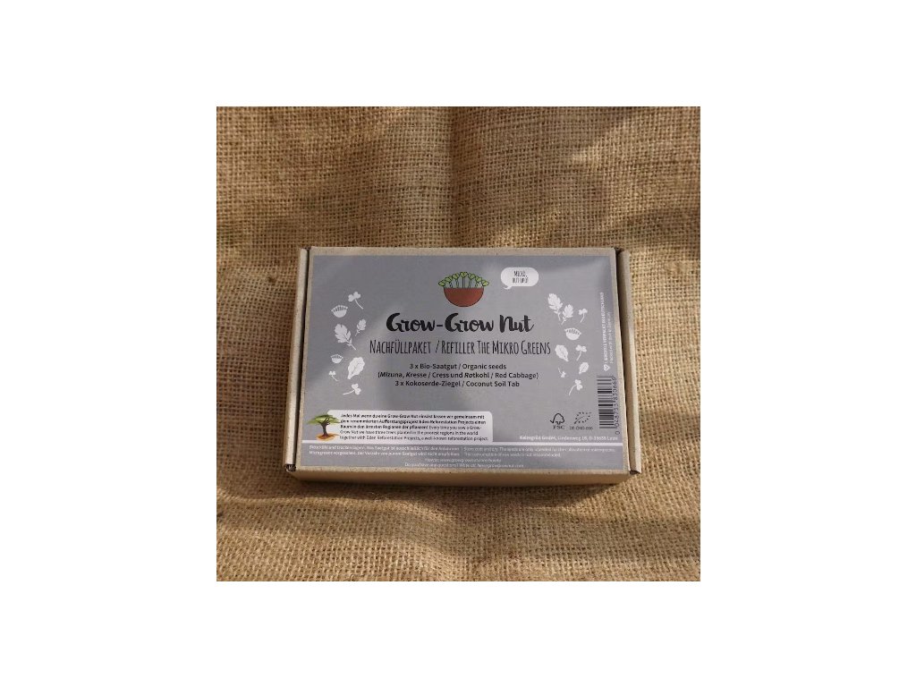 Náhradné náplne pre Vašu kokosovú misku Grow-Grow Nut obsahujú kokosovú pôdu a rôzne druhy chutných microgreens.